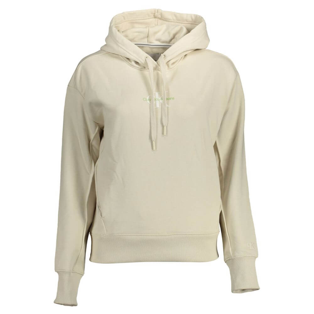 Elevate your casual wardrobe with the Calvin Klein long-sleeved sweatshirt, a perfect blend of comfort and high-fashion. This chic beige piece features a cozy hood, convenient pockets, and is adorned with a distinctive print and the iconic logo for that touch of designer flair. Crafted from a premium mix of cotton and elastane, it promises a snug fit with just the right amount of stretch. Make a bold statement in this trendy must-have.