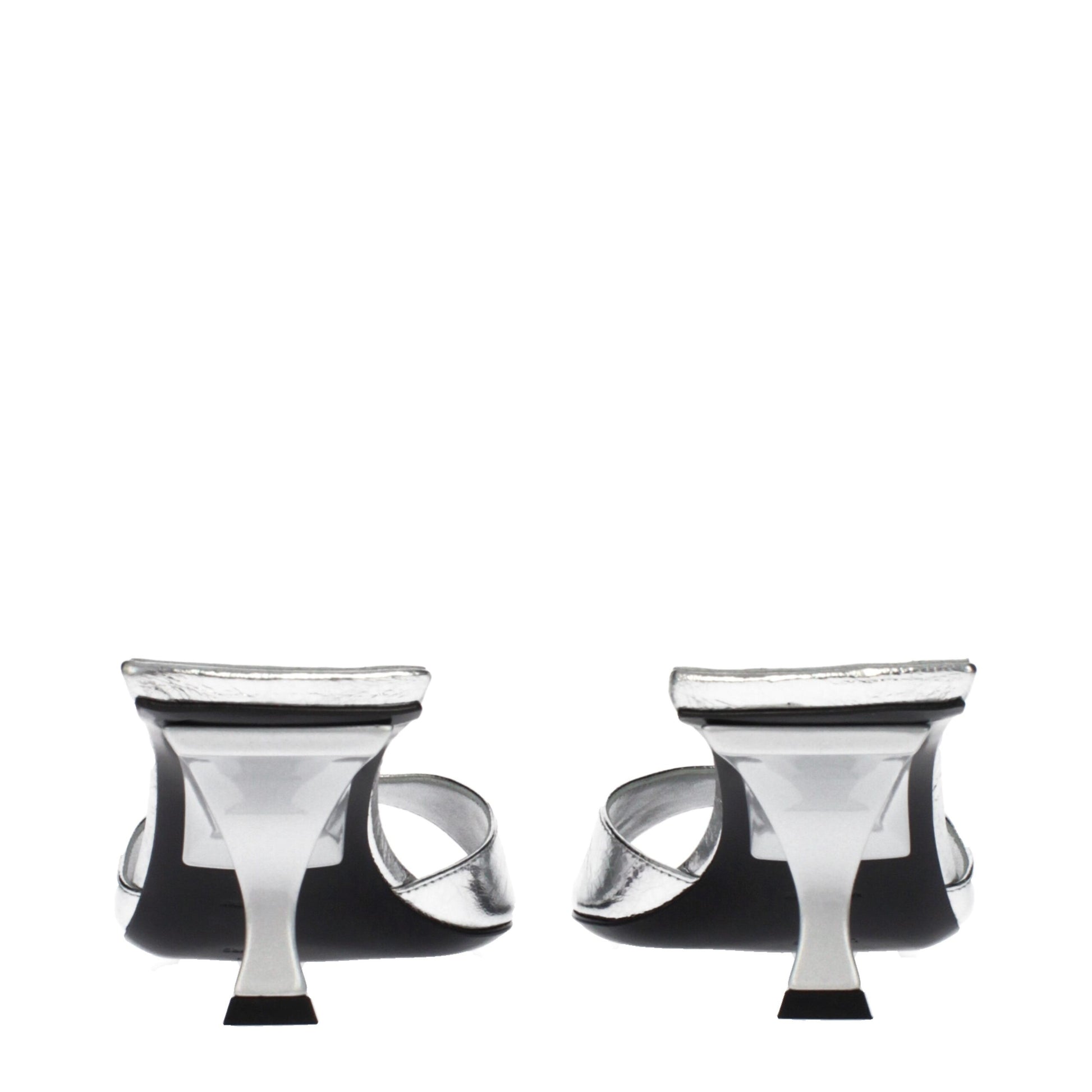 The product with MPN SH00838LBT070AA002 and code F85310 leather in silver is a sandals designed by The Attico. It has features like vintage effect.